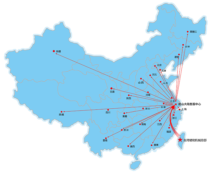 昆山嘉尼赫機(jī)械有限公司為臺(tái)灣鍵和機(jī)械股份有限公司在大陸設(shè)定的唯一子公司,本公司于2010年4月在昆山仕泰隆模具城成立,應(yīng)市場(chǎng)需求于2015年2月搬遷至昆山周市鎮(zhèn)成立鍵和中國(guó)售服中心。設(shè)有獨(dú)立的零配件倉(cāng)庫(kù)及機(jī)臺(tái)大修車(chē)間,機(jī)臺(tái)樣機(jī)展示廳。